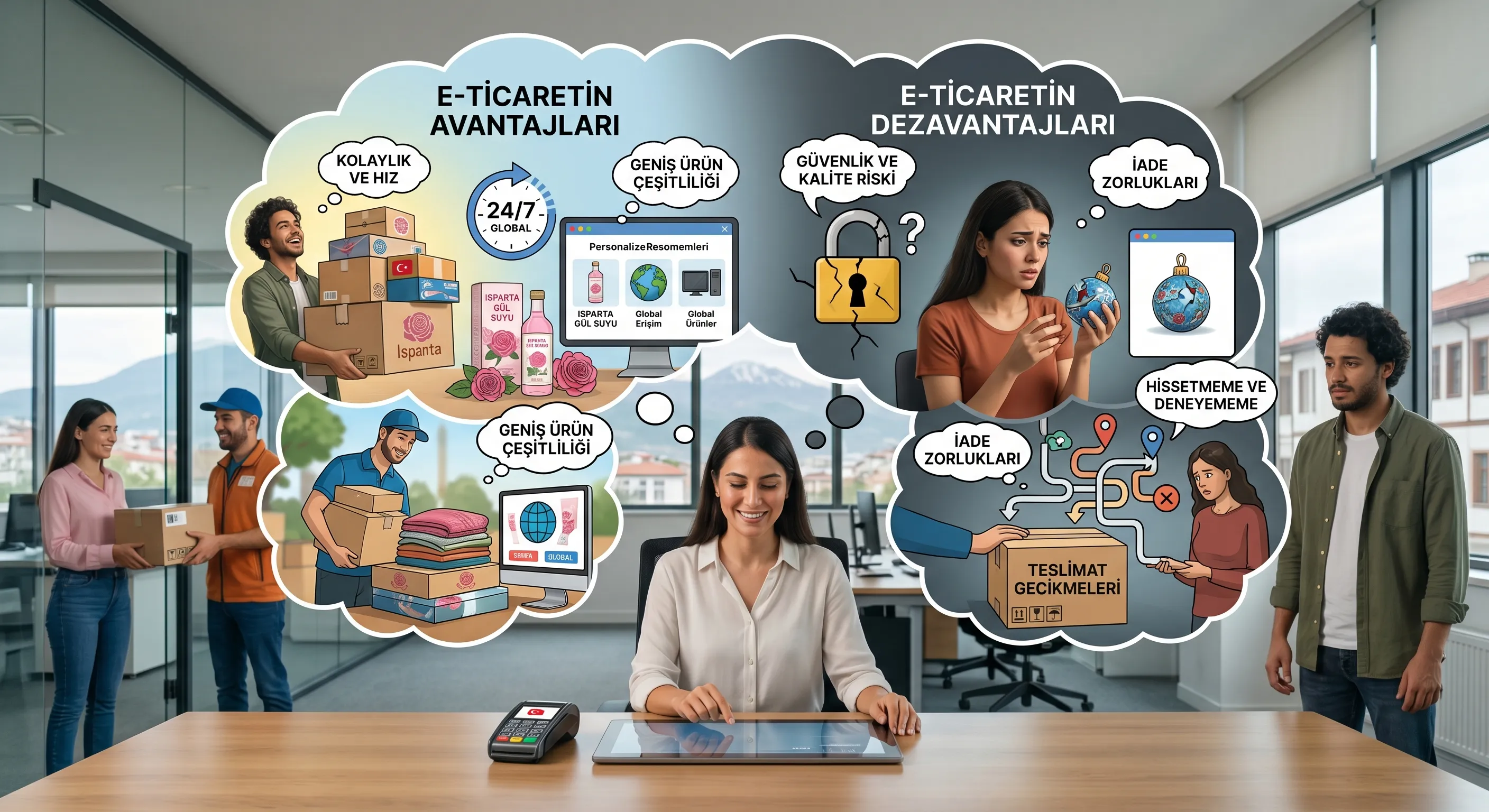 E-ticaret; düşük operasyonel maliyet ve sınırsız erişilebilirlik sunarken, veri güvenliği ve yoğun rekabet gibi dikkatle yönetilmesi gereken stratejik riskleri de beraberinde getirir.